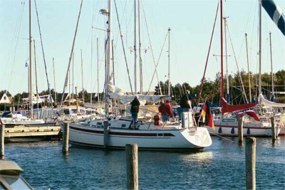 It was in Gedser that we supplied our stocks of food (hint: Danish potato chips are good), and unloaded our Danish Leergut (Danish empty bottles are different!) but forgot to cash the coupon for them. But except for a few differences, things seemed pretty close to Germany. For instance, the locals seemed to speak a strange mixture of German and English which they called Danish. And then the highly rated showers took a strange type of token with holes in it, that they called Kroners. The local dock master gave us a speech about power cables shorting out his grid, and told us his plans to head south to Greece, and we were done for the day.