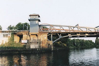 The Burlington Northern Bridge with a clearance 43 feet (13.11 m) at high tide (mean high water of an approximate 10-foot/3.05-m tide) is normally up unless a train is coming. This is the only bridge on the ship canal west of the locks.